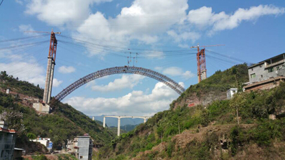 5月13日下午16时,伴随着机器的轰鸣声、鞭炮声、热烈的掌声和欢呼声,900T轮式提梁机将737.6吨箱梁缓缓提起,成