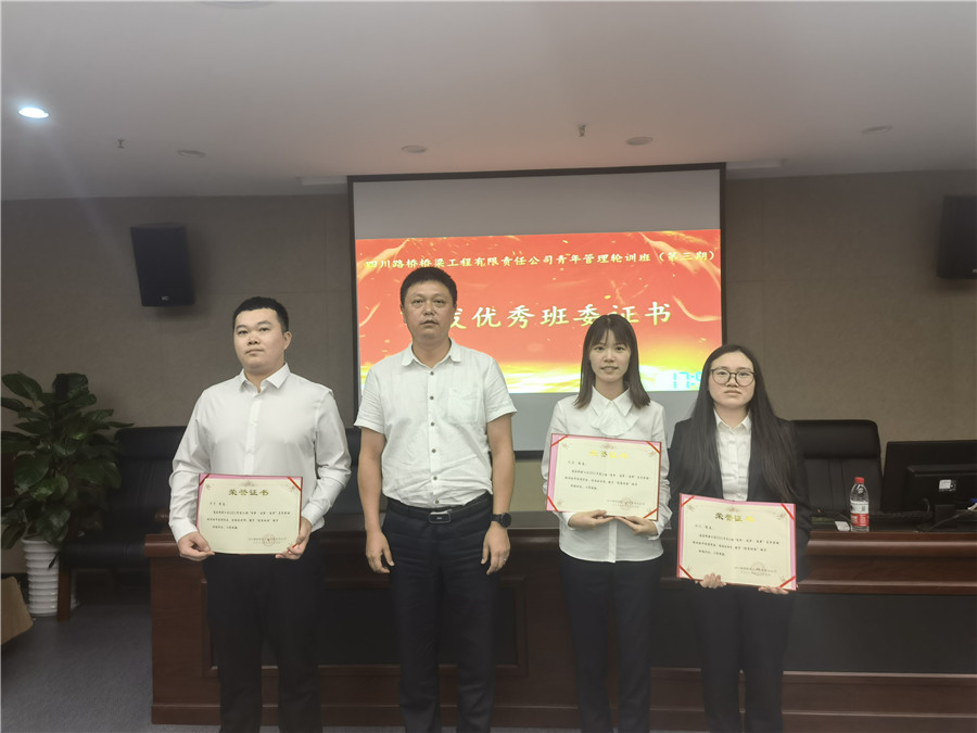 结业典礼上,带班老师带领大家回顾本次培训历程。随后,由林总为本次培训优秀小组、优秀学员、优秀班委颁发荣誉证书。最后,林总对本次培训进行总结讲话,希望全体学员树立“三个意识”、发扬“三种精神”,牢记“三点要求”:一是坚持踏实做事、踏实做人的作风,以求真务实的态度做好本职工作;二是积极发扬传帮带的作用,将本次所学所悟带回项目,以自身的学习改变带动项目树立终身学习的信念,形成企业良性发展的学习大循环;三是抓住蜀道集团成立、国企三项改革的机遇,珍惜公司、项目平台带来的成长机遇,乘势而上,将个人成长与公司发展紧密结合,把自己人生的梦想和企业的使命有机的融合在一起,要做“敢于有梦,勇于追梦,勤于圆梦”的新时代川桥青年!