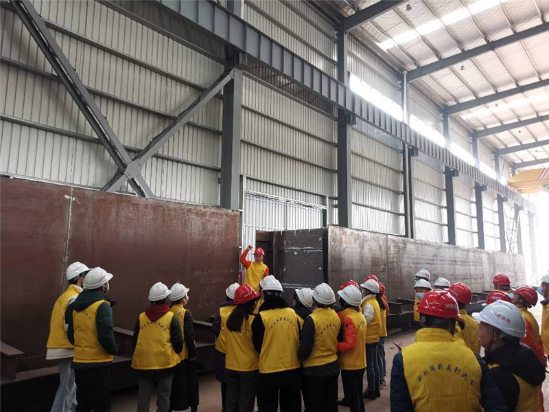 全体人员首先在生产车间,就近期加工的金简仁项目钢箱梁加工、检测、吊装等细致交流。加工厂技术人员王瑞向大家介绍讲解加工全流程情况。作为公司几大主营下属单位,加工厂作为大型钢结构加工厂家,和业务包含钢结构检测的检测公司,以及设备管理的机具站,活动人员借此机会不断提问、交流、分享。