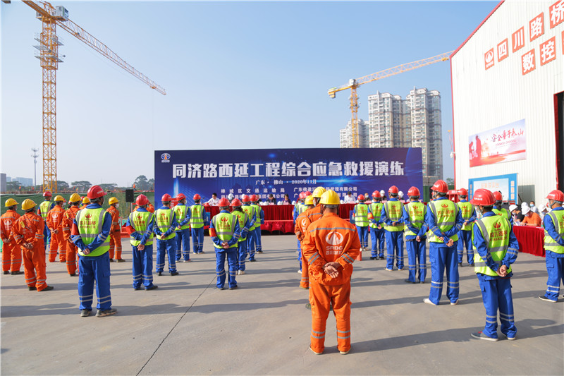 为认真贯彻落实佛山市禅城区交通运输局印发《佛山市禅城区交通运输局(区轨道交通局)突发事件应急管理工作规范》和《佛山市禅城区交通运输行业突发事件总体应急预案》的文件精神,不断提高项目应对突发事件的应急保障能力。2020年11月24日下午15:30,同济路西延工程组织开展了2020年综合应急救援演练,禅城区交通运输局质管科科长叶峰、安全科副科长邱建萍、交建科副科长尚建国、广东佛盈汇建工程管理有限公司总经理胡英豪、副总经理陈金水、胡永强、总工程师姜同辉、佛山市第一人民医院禅城医院及建设单位管辖的其他在建公路工程、市政工程、水利工程、房建工程的监理单位总监及施工单位项目经理等七十余人到场观摩指导。