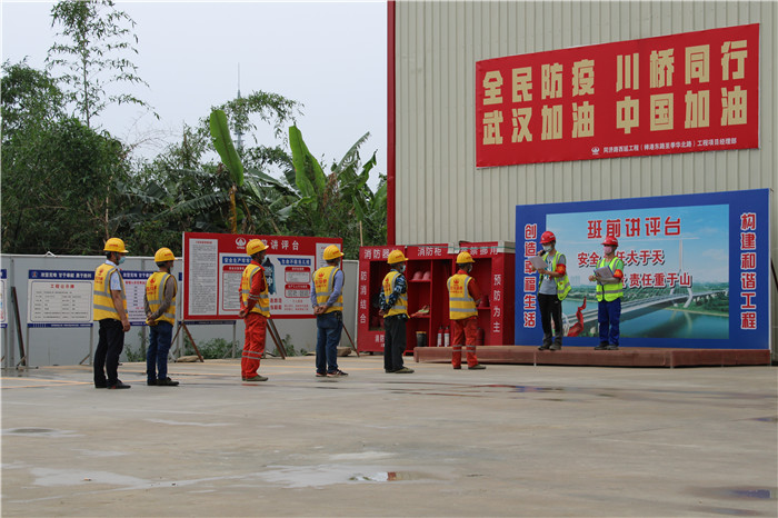 演练结束后,建设单位项目负责人欧阳佳丁、监理单位总监龚德阳分别对此次疫情防控演练进行点评,表示此次疫情演练内容丰富,演练卡点准确,行动迅捷,充分展现了发生突发情况时项目具备应对能力,定能高效、迅速处理好突发情况,及时控制事件发展状态,确保项目稳定发展。接着由禅城区交通运输局交建科庄振农科长作发言:首先对此次疫情防控演练效果表示肯定,其次对接下来的工作提出几点要求。一是持续做好疫情防控工作,切实保障所有参建人员身体健康安全,确保稳步推进疫情防控下施工生产;二是持续抓好生产、安全、环保、质量等工作任务,落实责任,从严从实,抓紧抓牢各各项工作关键环节,做到任务平衡,稳步提升项目综合管理水平,促进工程质量持续加强,确保顺利完成各阶段施工生产目标,为同济路西延工程建设贡献自身力量。