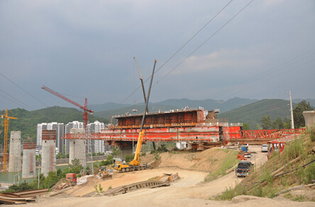 西成客运专线修城坝清江河特大桥移动模架拼装全部完成
