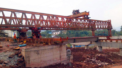 宜叙高速公路19分部全长7.5公里,其中桥梁12座,此次架设的水中沟中桥为旱桥类型,最大桥高8.5米,上部结构为2*25m预应力砼简支小箱梁,桥面连续。该桥虽规模不大,但却是我部的重点桥梁工程之一,它对打通全线运梁通道和影响通车目标任务的完起着关键的作用和过渡性的意义,该桥施工难度不大,但由于上跨国道321,需改道施工,牵涉部门众多,协调工作繁琐、工期紧迫、难度较大,为尽早完成水中沟中桥的架设工作,我部自今年年初积极筹备改道工作,通过不断优化断道施工方案、为梁板的生产架设和道路改组奠定了坚实基础。