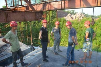 下午四点,蔡董不顾高温炎热,一下车就深入施工现场。在项目经理詹文等人的陪同下,以路基一队为起点,沿线检查了路基一队、米汤沟大桥、路基二队、余家沟大桥、预制场、彭家沟大桥、嘉陵江特大桥。在施工现场,蔡董认真察看工程质量,仔细询问施工进度及影响施工进度的主要因素。在听取了项目经理詹文详尽汇报后,蔡董对项目部不等不靠、千方百计推进项目施工进度表示满意,同时对项目部取得的成绩给予肯定,并提出几点要求:一是路基一队的路基要预留填筑30cm,并在交路前填筑;二是米汤沟大桥要加快7#墩进度,把控好工期,同时,要加强对高墩施工的安全管控,在确保安全的前提下加快进度;三是嘉陵江特大桥悬臂块件要严把质量安全关,将施工质量与安全生产放在首位;四是将嘉陵江特大桥索桥的荷载试验由均布荷载改成集中荷载;五是要加快嘉陵江特大桥17#墩进度,积极推进每月目标进度,抓组织,抓质量,抓节点控制,全力确保节点目标顺利实现;六是要做好防暑降温工作,适当调整作息时间,避开高温时段施工,确保劳动安全,安全度夏。