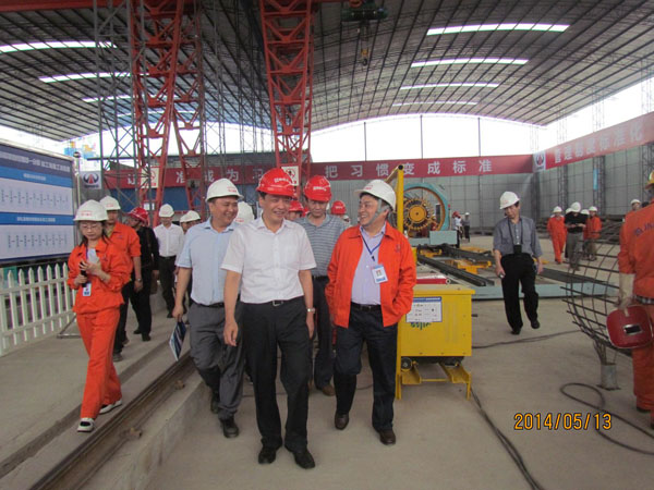 2014年5月13日中午1点30分,成都铁路局副局长、成贵铁路公司董事长张国力带领成贵铁路全线观摩团队到我部观摩标准化钢筋加工场。