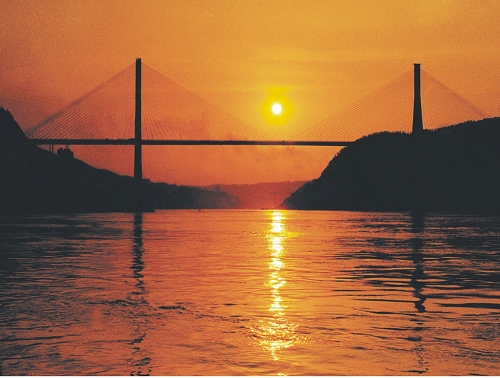 全长645.11米,主桥长631米,主跨330米,双塔双索面PC砼斜拉桥,1997年5月建成通车。获2000年四川省天府杯金奖。