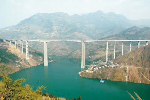 全长950.44米,主跨230米,主墩高156米,预应力砼连续钢构桥,2008年12月建成通车。